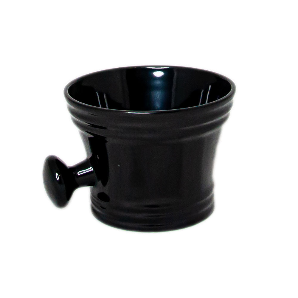 Una herramienta esencial de barbería clásica es el bowl para afeitar con mini mango.