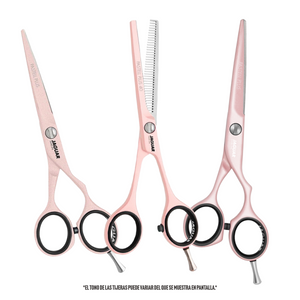 Filo de Navaja (Slice): Ambas hojas están pulidas y rectificadas de forma cóncava (hollow ground), lo que crea un filo extremadamente afilado y un movimiento suave. Permite realizar la técnica de slicing (deslizado) sin dañar el cabello. Ideal para crear texturas suaves, capas que se funden de forma natural y un corte nítido.