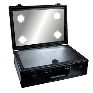 La Maleta espejo integrado y luces LED táctiles, de termo plástico con bordes de aluminio es una herramienta profesional imprescindible en el mundo de la belleza.