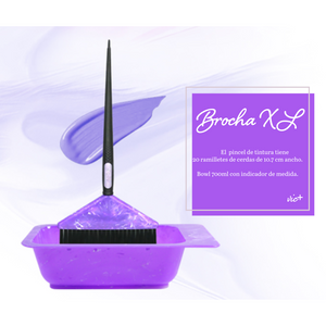 ¡Este Bowl y Pincel de gran tamaño es un verdadero as bajo la manga para los profesionales de salones! Con su amplia capacidad y tamaño, podrás mezclar y aplicar color, decolorante u otros tratamientos rápidamente sin tener que recargar constantemente.