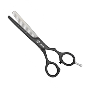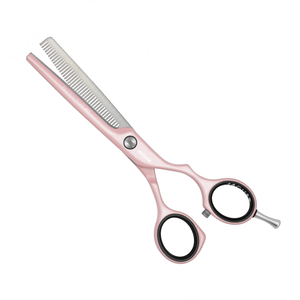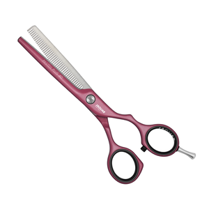Versión offset en tamaño 5.5". Con 40 dientes de entresacar con finísimo dentado en forma de V adelgazan, estas tijeras de peluquería facilitan el modelado y adelgazan finamente el cabello.