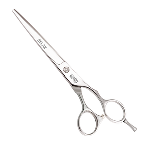 Tijera filo navaja con forma ergonómica de acero inoxidable.