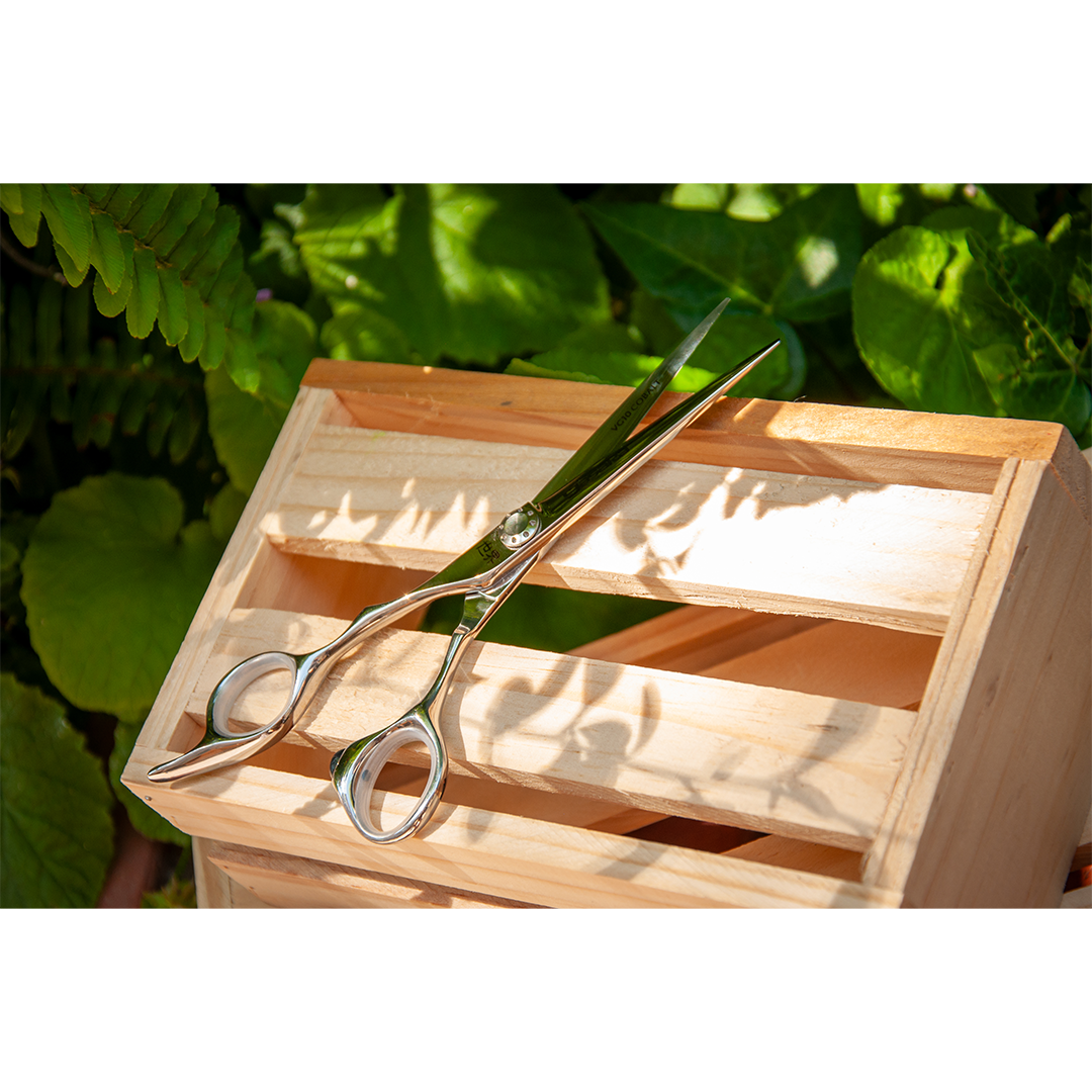 La Tijera de cabello con filo de navaja Yasaka Fuyu diseñada específicamente para satisfacer las necesidades de los usuarios zurdos.